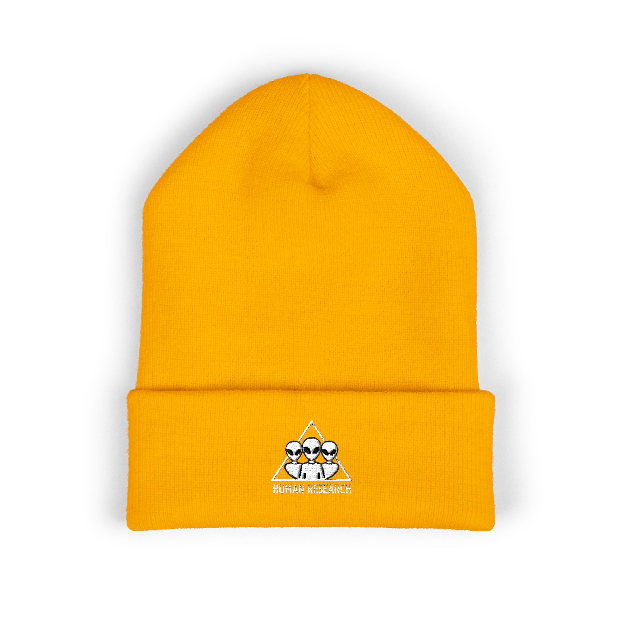 Soft, structured, and quietly confident — this classic cuffed beanie carries the Human Research logo in raised embroidery for a look that says you care about craft. The 12″ cuff gives a clean silhouette that stays put on blustery commutes and late-night walks. Lightweight but warm, the turbo acrylic knit resists stretching and keeps its shape through seasons of wear. Hypoallergenic and thoughtfully made, it slips into everyday rotation for adults who favor subtle brand details over loud statements. Wear it folded low over your ears during chilly lab runs, while running data reviews at dawn, or layered with a field jacket on research trips — the embroidered badge nods to your work without shouting it.