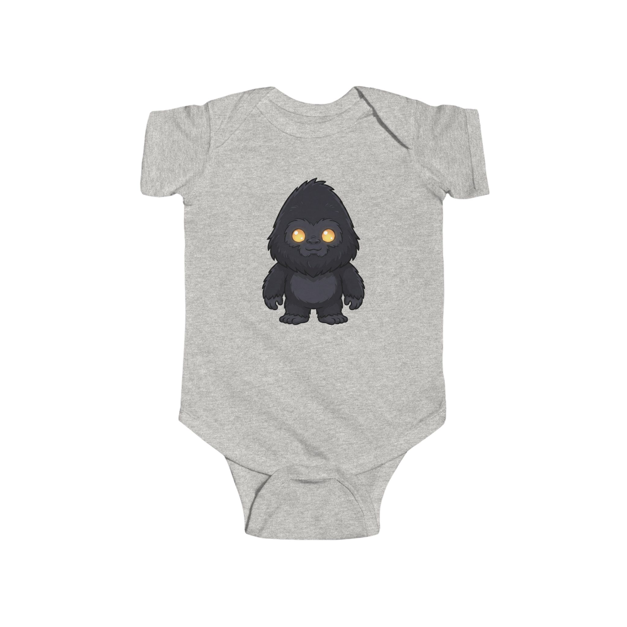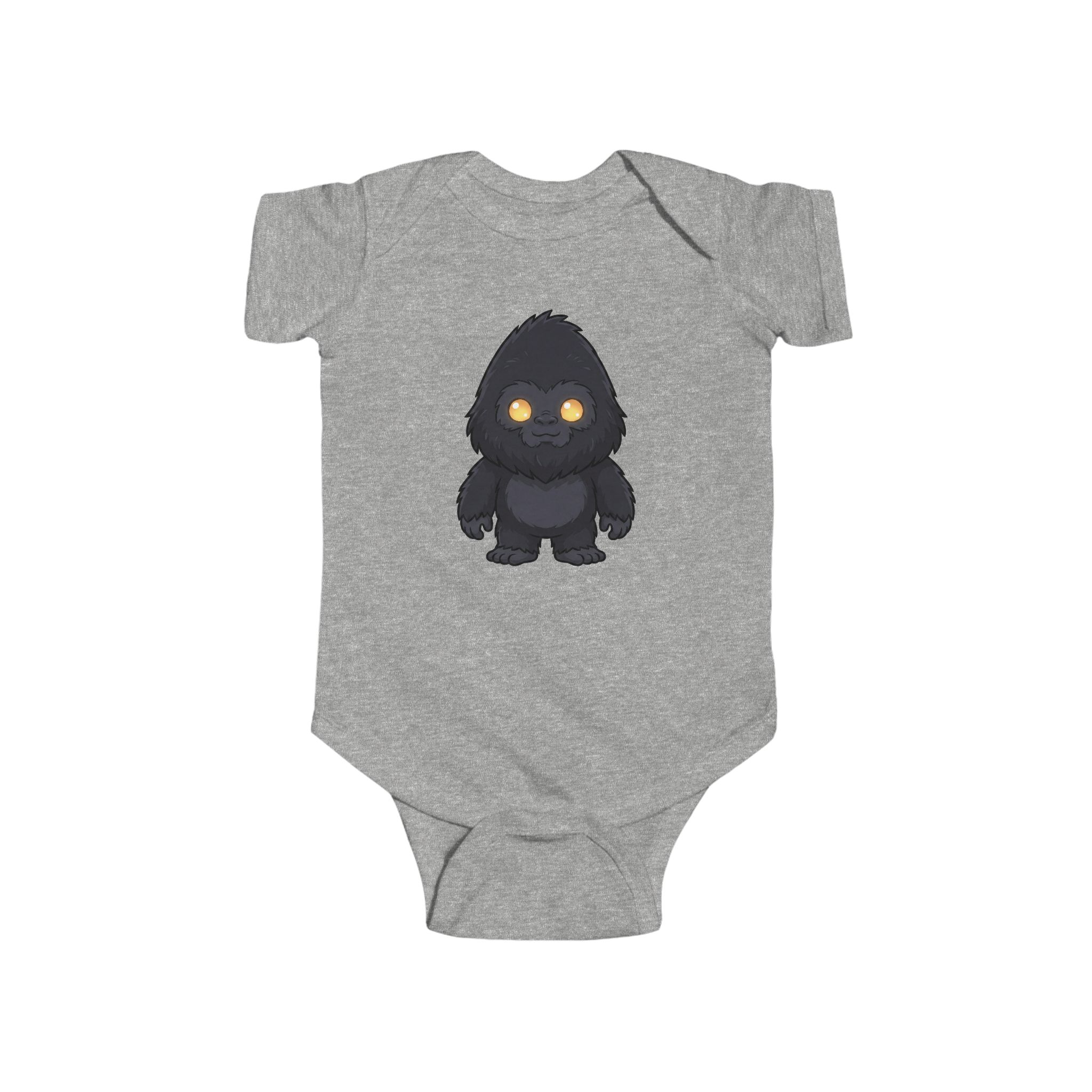Soft, light, and playful — this infant bodysuit wraps little ones in breathable combed ringspun cotton with a charming nocturnal creature printed at the chest. The heather-gray fabric and ribbed knit binding let tiny arms move freely while side seams keep the shape wash after wash. Matching snaps at the crotch make quick changes easy, and the tear-away label keeps baby’s neck fuss-free. A cozy everyday layer that reads like a bedtime story: gentle, warm, and just a little bit mischievous.