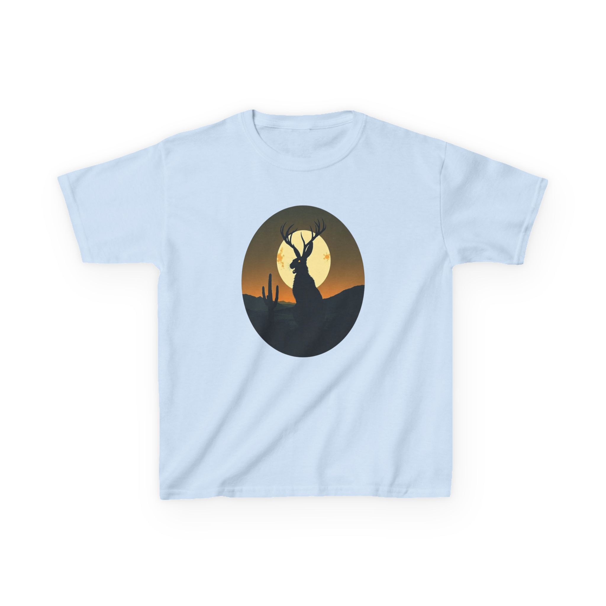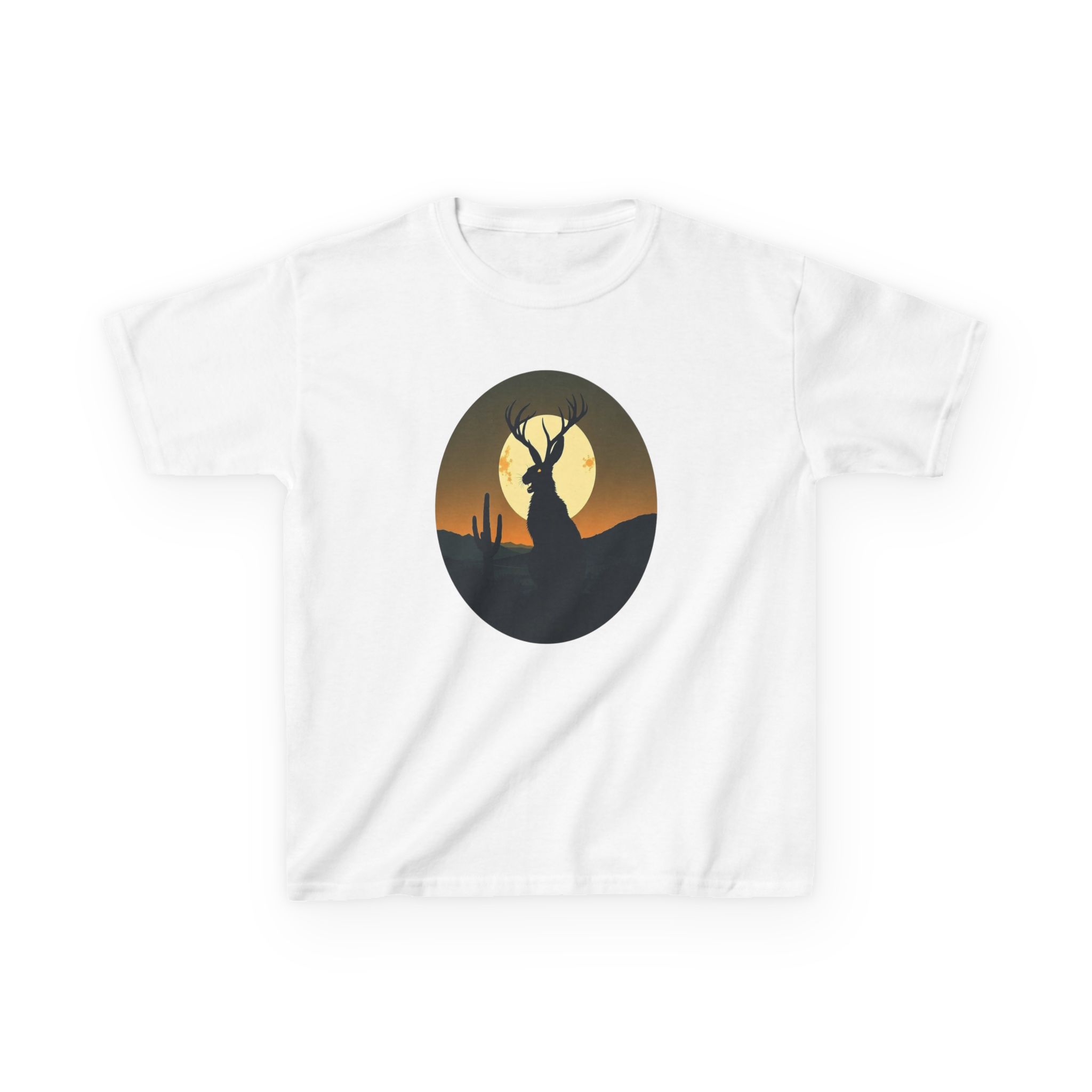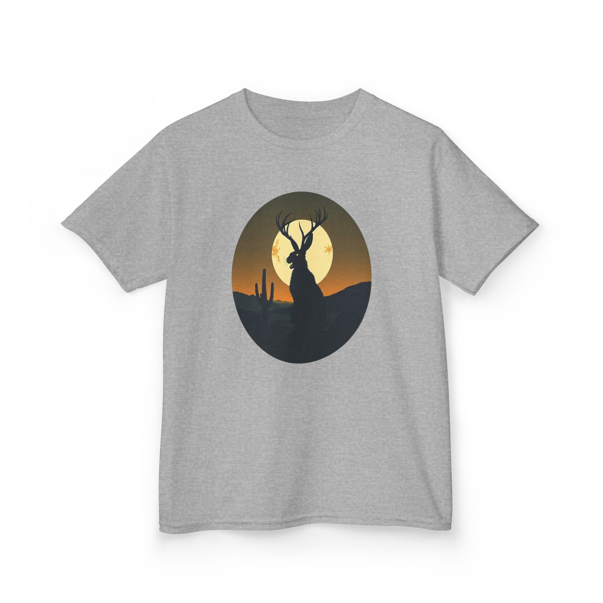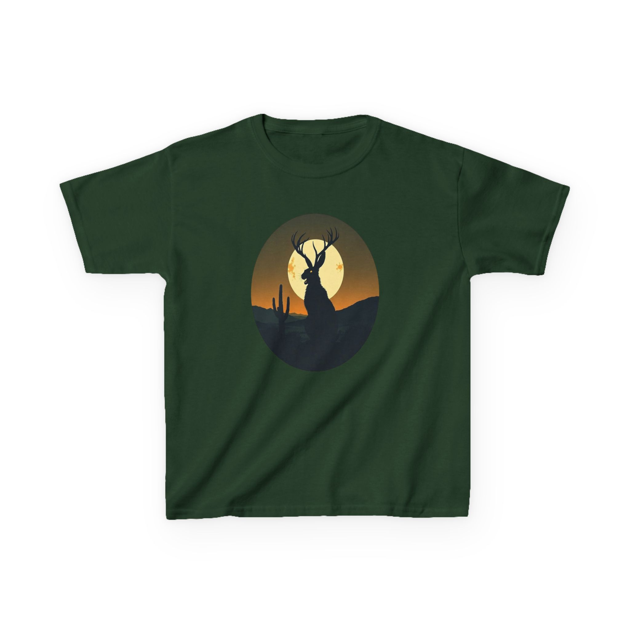 Rendered in a vibrant sunset palette that transitions from deep orange and golden yellow to dark forest green, this Jackalope desert shirt offers a moody, high-contrast look that pops against the fabric. Printed on our premium heavyweight US cotton, it provides a structured streetwear silhouette that is built for both comfort and durability. Whether you're exploring the high desert or the urban jungle, this cryptid graphic tee is the ultimate evidence of your belief in the unexplained.