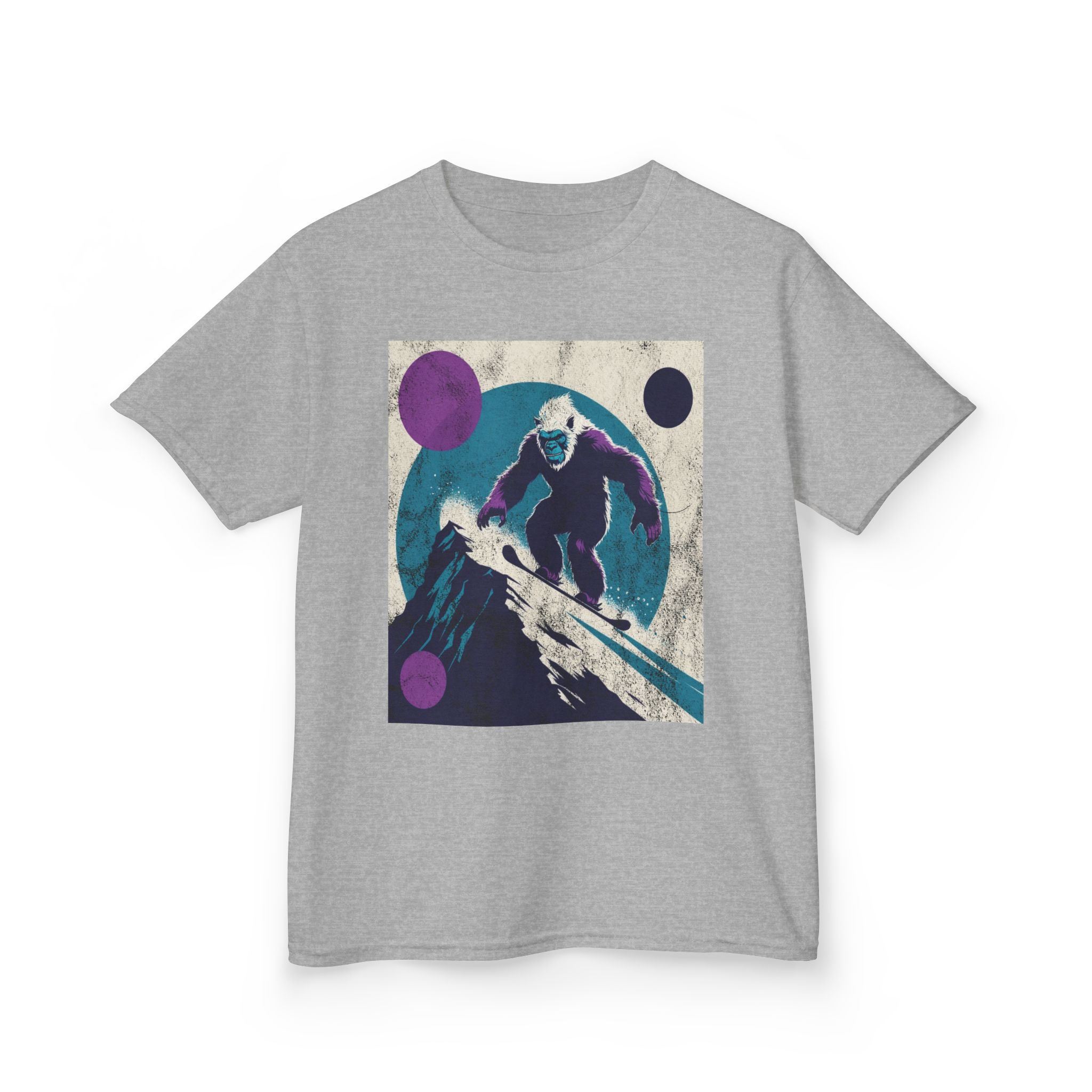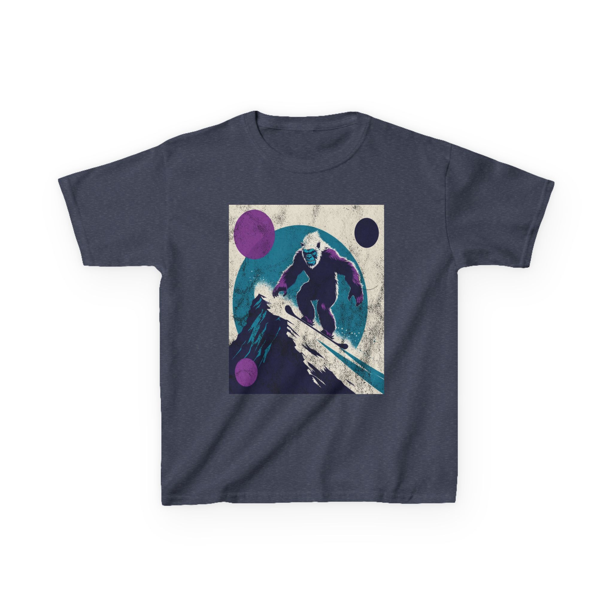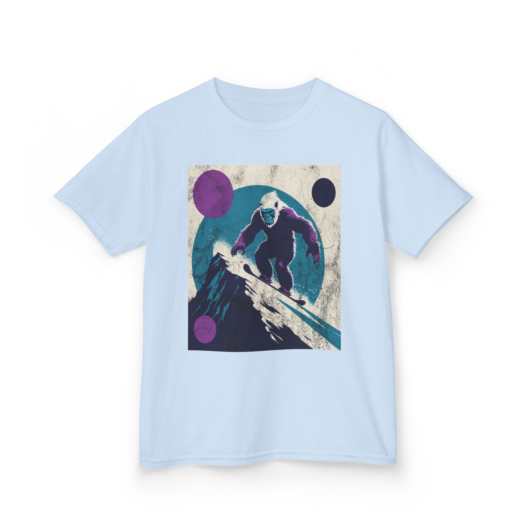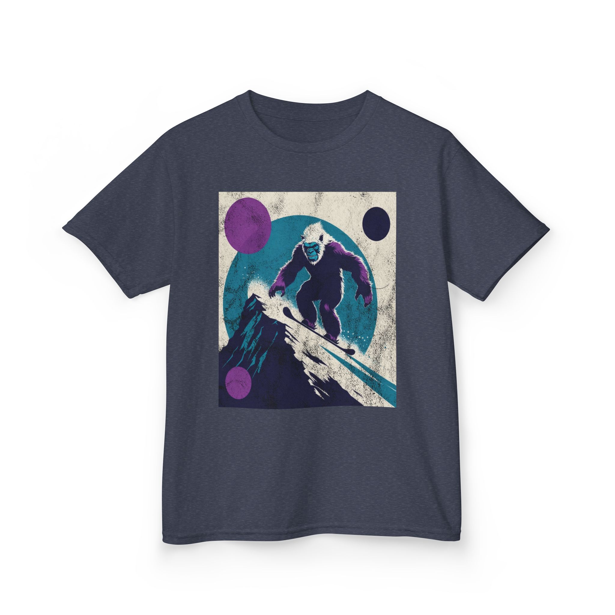 This kids’ tee channels snowy afternoons at the mountain lodge — think fresh tracks in powder and that quiet thrill right before the first drop. Soft, midweight cotton sits warm against small shoulders while a playful yet subtle Yeti snowboard graphic sparks imaginations. It wears like a favorite: roomy enough for layering, durable for tumbles in the snow, and easy to wash after sled runs. Let a kid slip into this shirt and feel ready for an afternoon of lifts, hot cocoa breaks, and swapping stories about who conquered the hill.