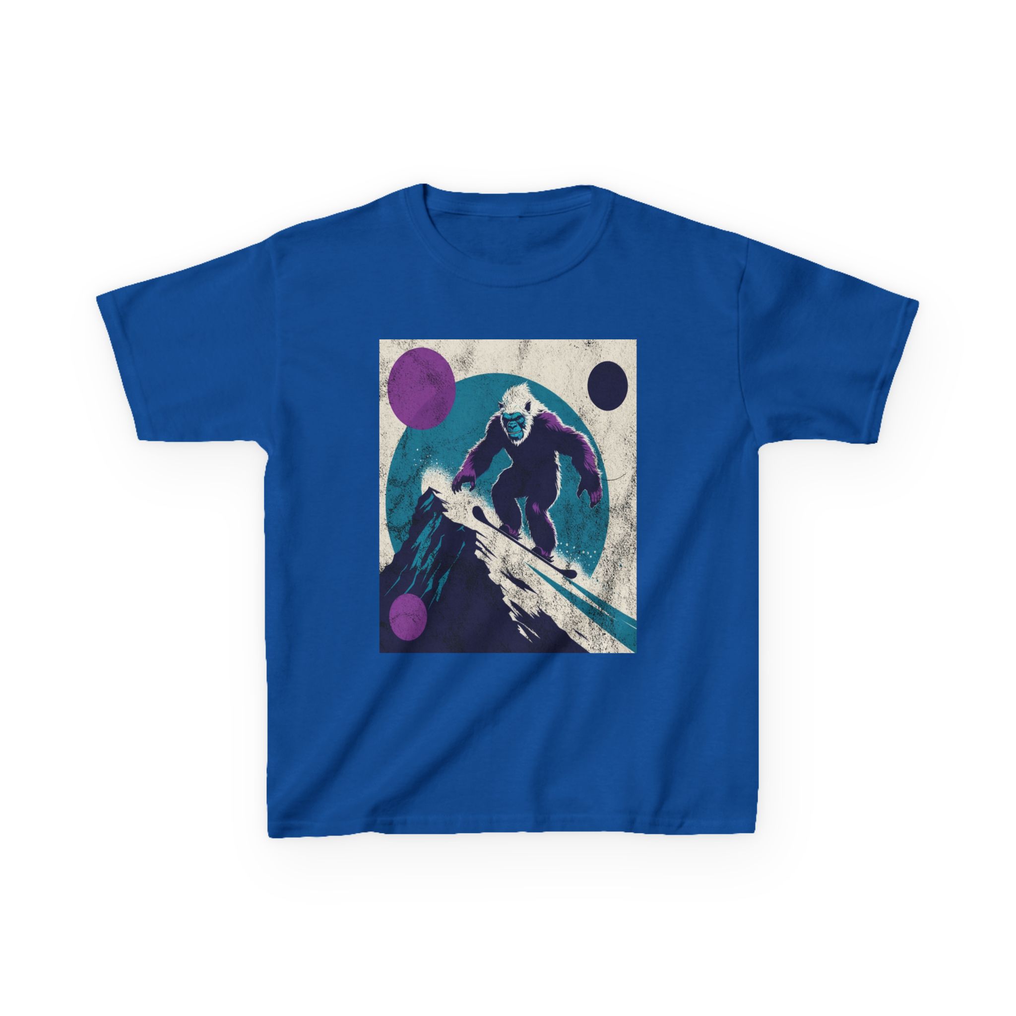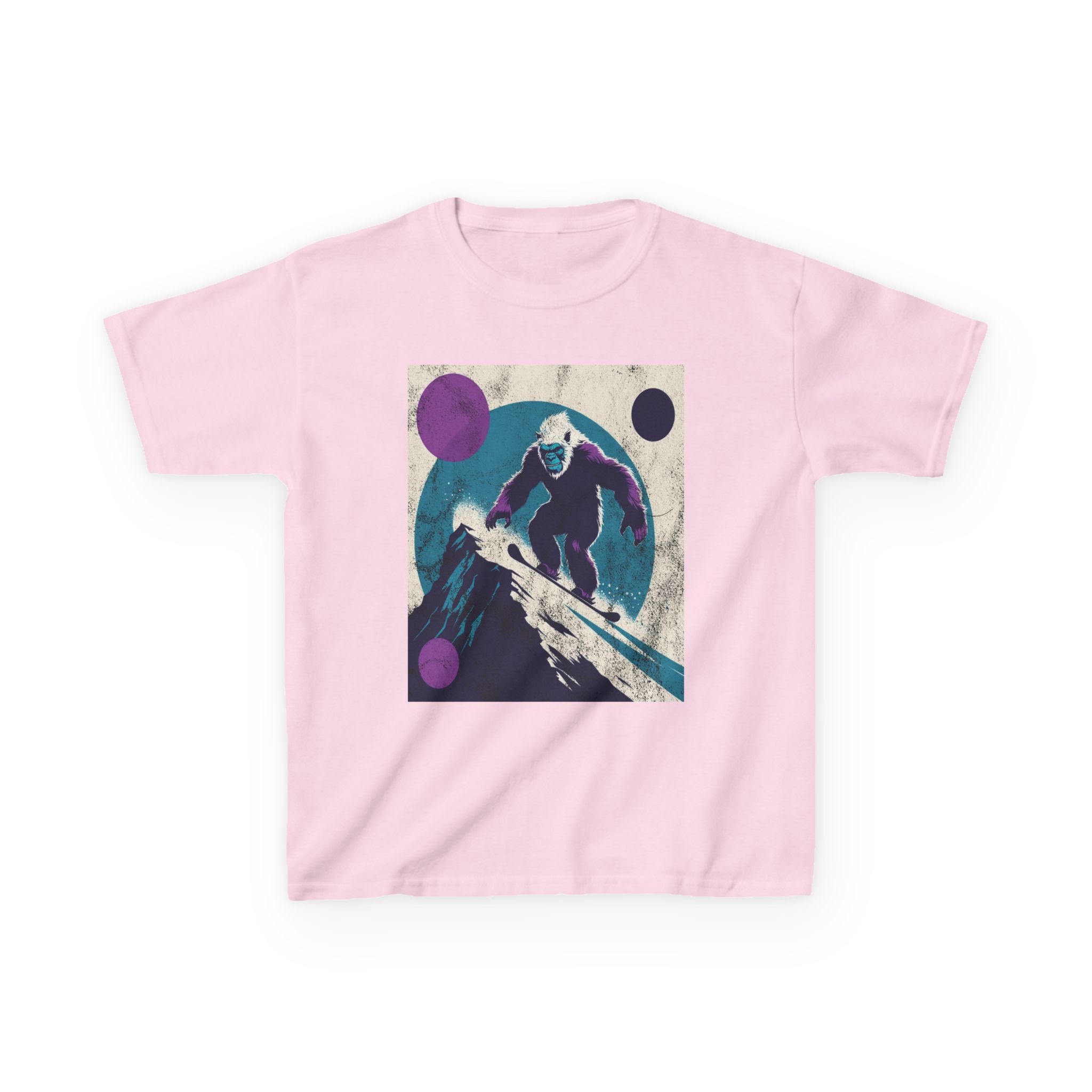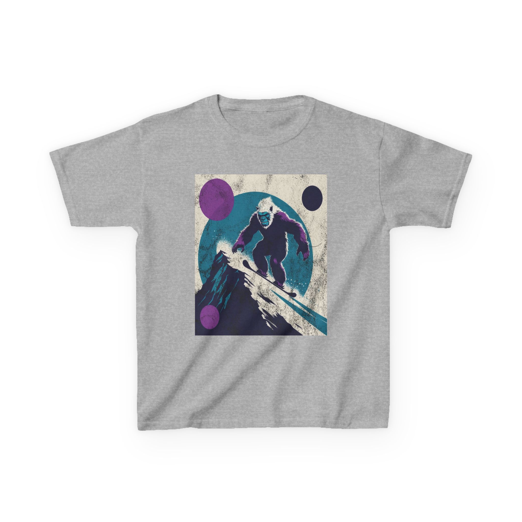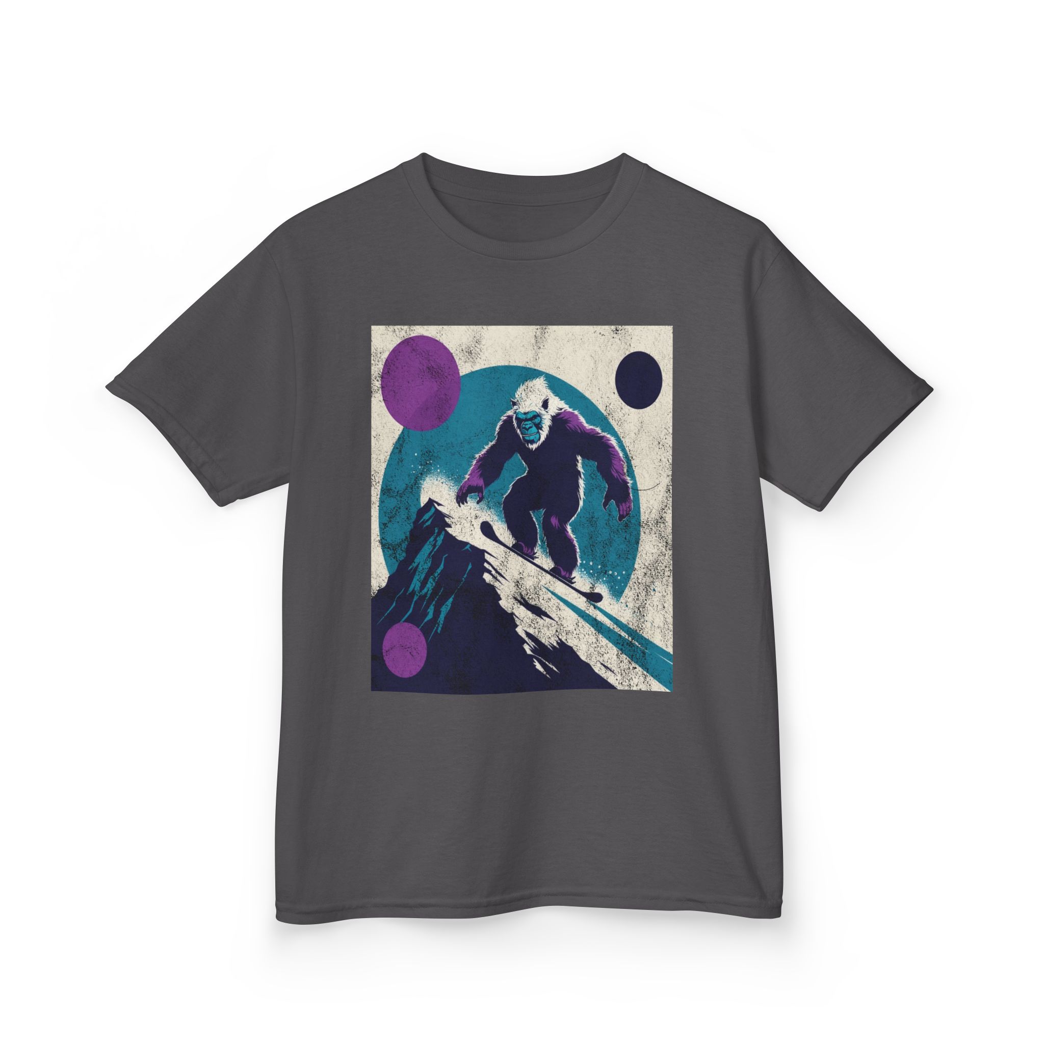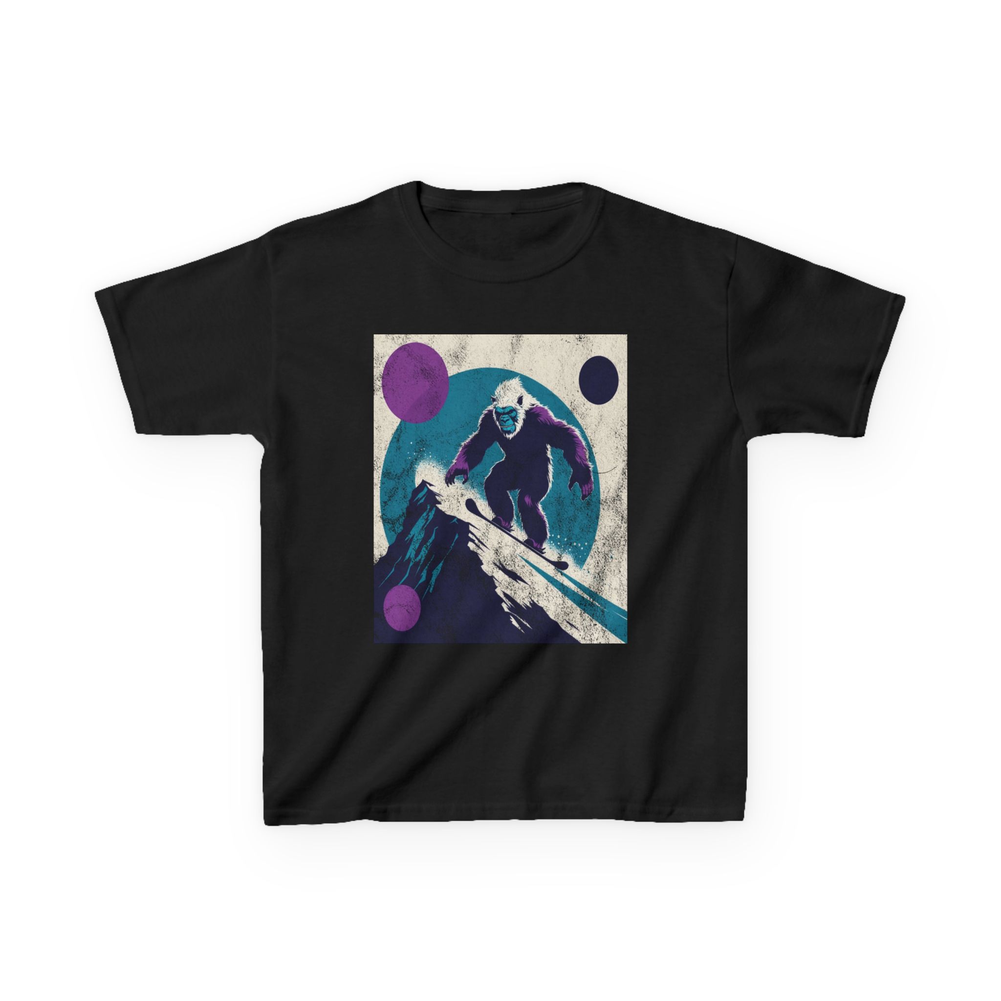 This kids’ tee channels snowy afternoons at the mountain lodge — think fresh tracks in powder and that quiet thrill right before the first drop. Soft, midweight cotton sits warm against small shoulders while a playful yet subtle Yeti snowboard graphic sparks imaginations. It wears like a favorite: roomy enough for layering, durable for tumbles in the snow, and easy to wash after sled runs. Let a kid slip into this shirt and feel ready for an afternoon of lifts, hot cocoa breaks, and swapping stories about who conquered the hill.