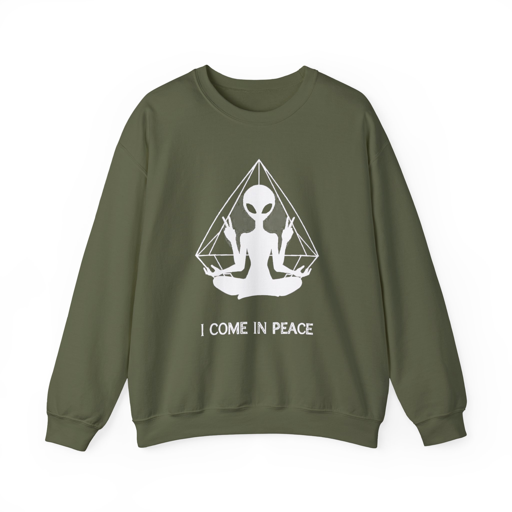 Select options This product has multiple variants. The options may be chosen on the product page Hoodie — Minimal ‘I Come in Peace’ Alien Meditation Graphic $50.00